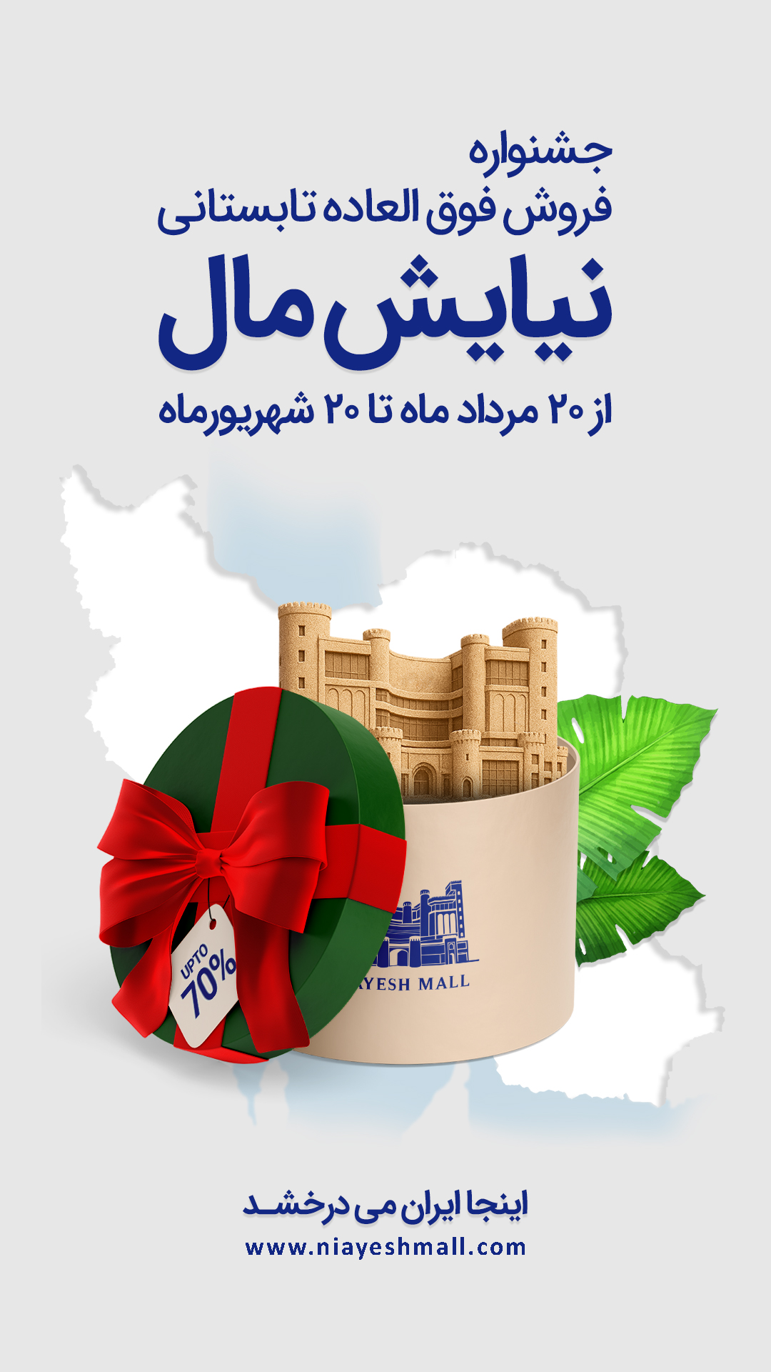جشنواره تابستانه مرداد 1404 🎉 جشنواره تابستانه نیایش مال شروع شد! 🎉از ۲۰ اَمرداد تا ۲۰ شهریور، آماده باشید برای یک ماه پر از هیجان با تخفیفهای تا ۷۰٪، رویدادهای
